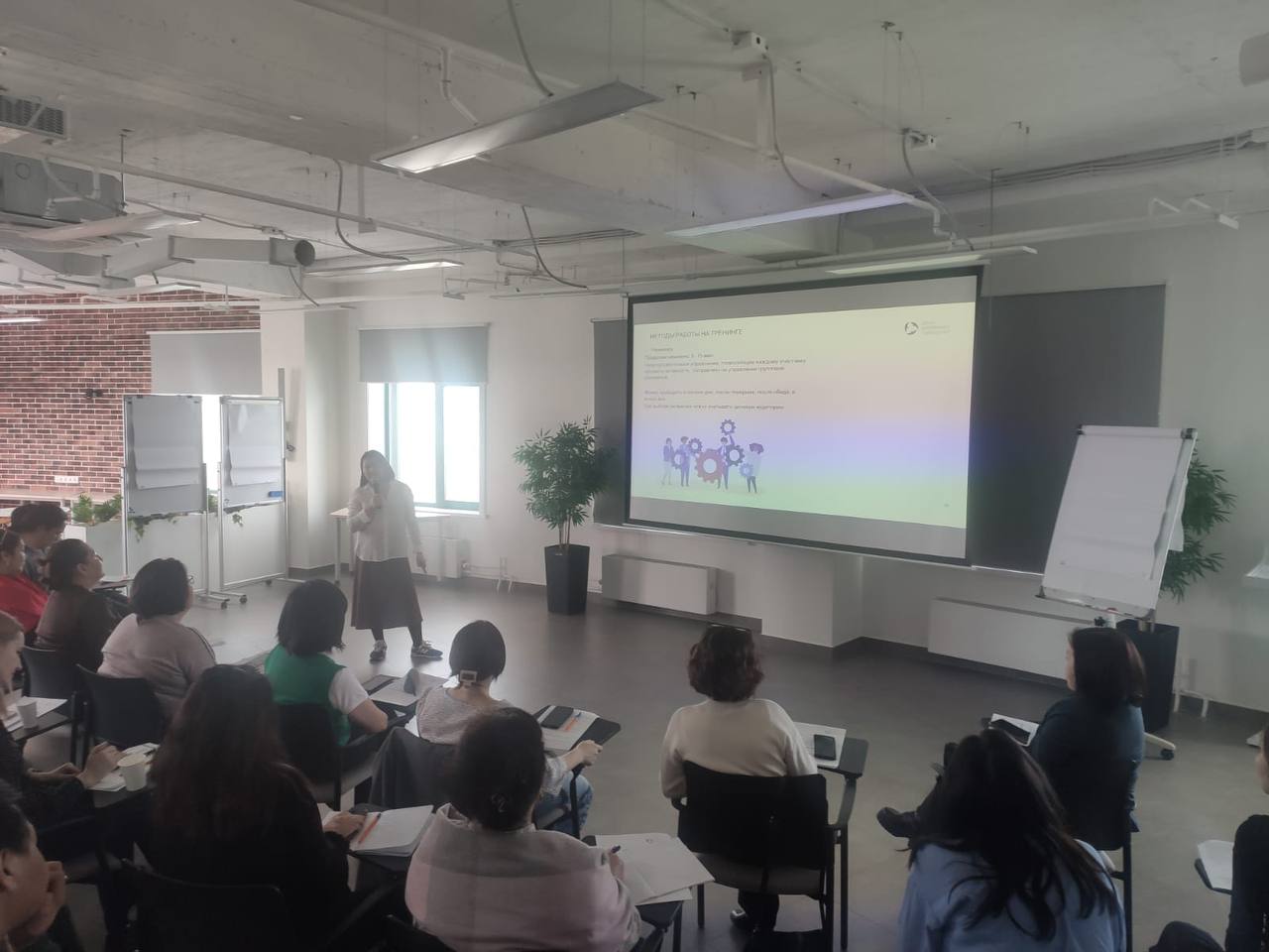 В 1-й день участники ознакомились с такими темами как, личность тренера, алгоритм создания тренинга, методы работы тренера и работа с сопротивлением. Так же, попробовали разработать свой сценарий тренинга и завтра выступят с конкретными темами.